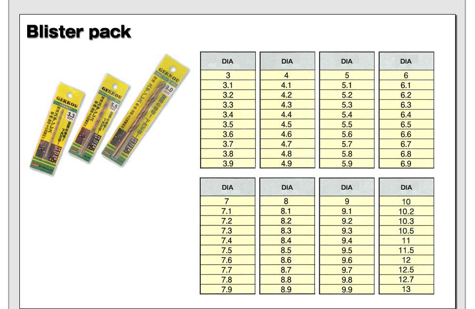 Φ9.0mm・Φ9.5mm・Φ10.0mm (各1支,一套共15支)
